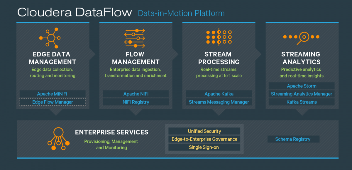 The Cloudera Data Flow platform provides a definitive solution for our clients challenges